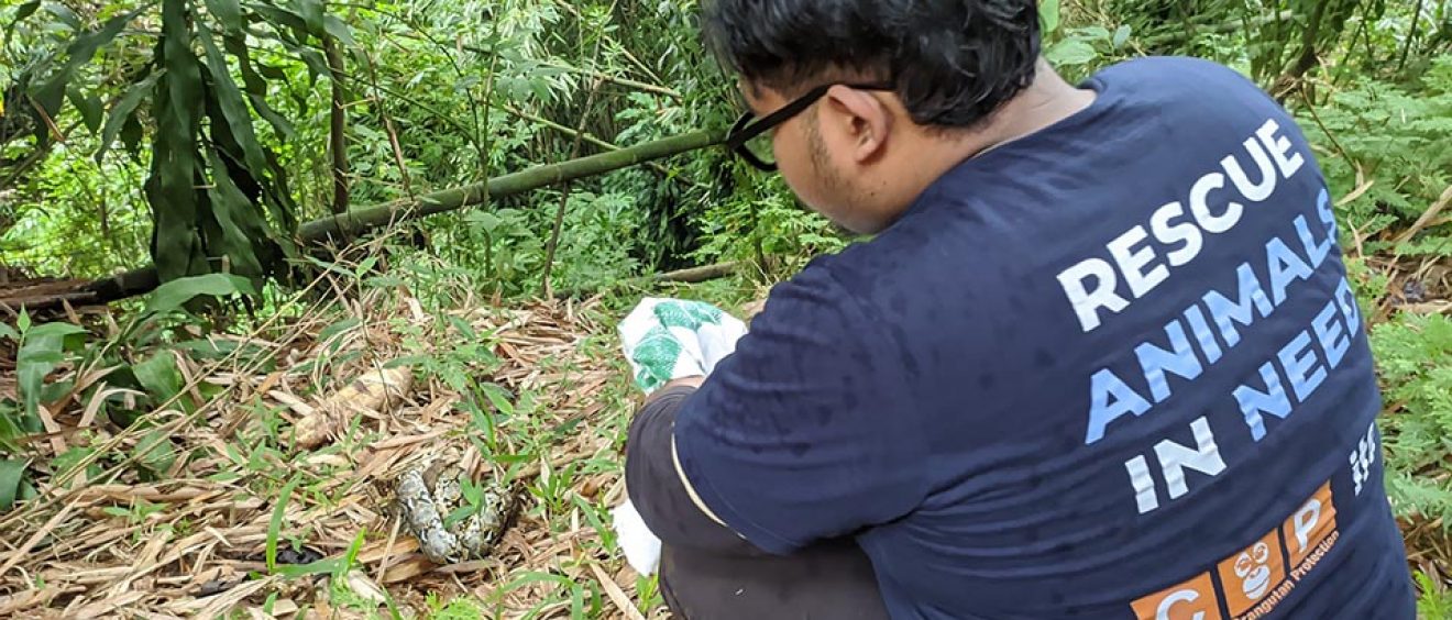 Setelah tim memeriksa kondisi ular dan melakukan pencarian lokasi yang ideal untuk ular dengan panjang dua meter ini, tim Animal Rescue COP pun melepaskan python ini. Selanjutnya tim memutuskan turun ke zona hijau karena mendung yang akhirnya hujan deras yang cukup lama.