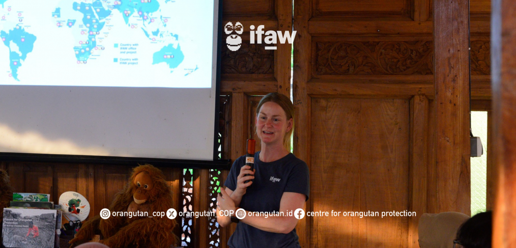 Novi: “Ini teh, di atas kandang mau ngobok-ngobok air tandon minum orangutan.”