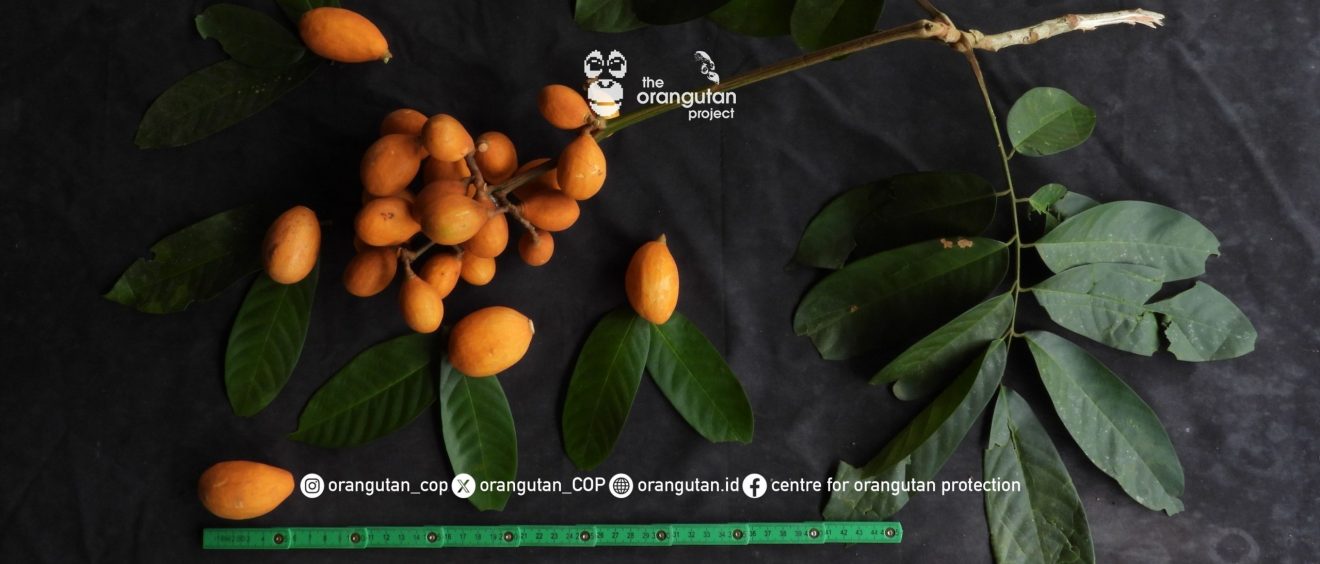 Sesaat setelah melangkahkan kaki darti perahu yang telah bersandar, kaki Yusuf, staf lapangan APE Guardian, menginjak sesuatu yang lembek, disertai aroma harum yang khas. Ketika menoleh ke bawah, benar saja, buah-buah hutan berwarna jingga tampak berjatuhan. Melihat hal tersebut, kami segera mencari pohon asalnya. Tak jauh dari karangan, tepian sungai berbatu yang tersusun dari batu kali kecil, berdiri pohon besar dengan buah yang bergerombol, persis seperti yang kami temukan di tanah.