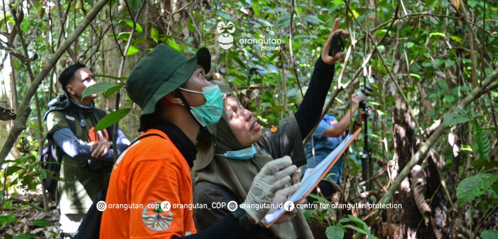 Pterospermum bornease) yang menjulang dan ara (Ficus racemosa) yang buahnya menjadi santapan favorit satwa liar. Satu per satu pohon yang merupakan potensi sumber pakan diamati, ditandai menggunakan pita, dan dicatat jenisnya. Aktivitas ini mungkin tampak sederhana, namun di balik setiap data yang terkumpul tersimpan arti besar. Vegetasi bukan hanya pelengkap bagi kehidupan orangutan, melainkan fondasi yang menopang kelangsungan hidupnya. Keberadaan pohon pakan menjadi penentu utama apakah suatu hutan benar-benar bisa menjadi rumah bagi orangutan. Pepohonan boleh tumbuh rapat, namun tanpa sumber pakan yang cukup, orangutan takkan mampu hidup dan berkembang dengan baik di sana.